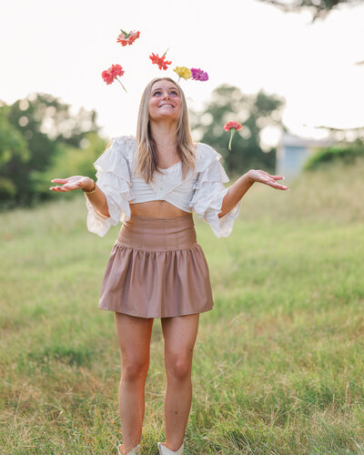 This is clearly a theme of this entire guide! The goal of adding in props or accessories is to make the shoot feel even more like YOU. Try to think creatively about the things that make you who you are. What are your hobbies? Favorite colors and styles? Extracurricular activities? Do you LOVE bright, girly colors and want to have a ton of florals in your images to compliment that? Are you an athlete with medals and trophies that you want to highlight? Do you already know your plans for college and want to have celebratory images to share about your next steps? Let’s do all the things!!!