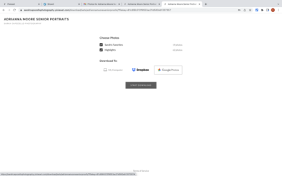 It is easy to download + save your digital images! When you are looking at your full gallery, you can click this button (the underlined down arrow) to open the download menu
