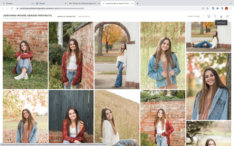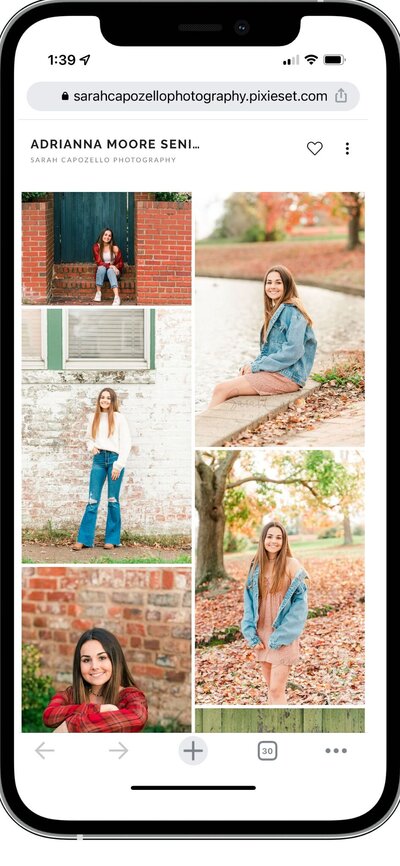 YAY! It takes 3-4 weeks from start to finish proofing and editing your senior images, then you'll get an email with the link to your full gallery - AH!!! This is where you will be able to download, share and print all of your purchased digital images. You can download individual images or the entire gallery at once. You can also individually save photos to your phone to start sharing on social media! The next few pages of the guide will walk you through how to use your gallery and the best ways to print and display your new favorite photos. Be sure to come back and reference this after your session!