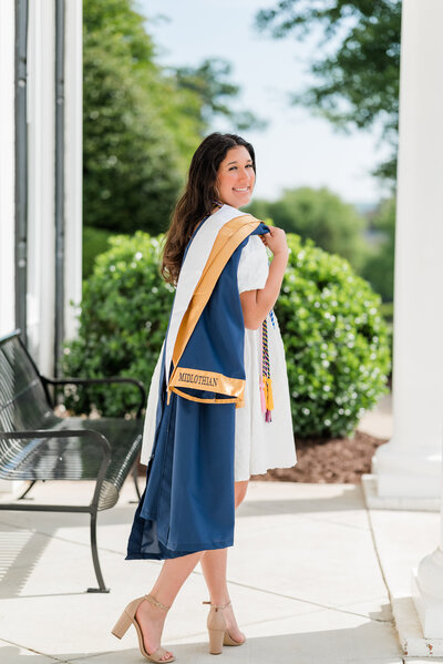 Because the gowns typically look a little like a potato sack (let's be honest), I typically photograph my seniors with them un-zipped to be a bit more flattering! I recommend wearing a sundress underneath - something white or neutral looks really traditional and timeless underneath the gowns. I also recommend a neutral pair of heels! We will get images with it both zipped and un-zipped, as well as with the cap and without - just so you have tons of options!