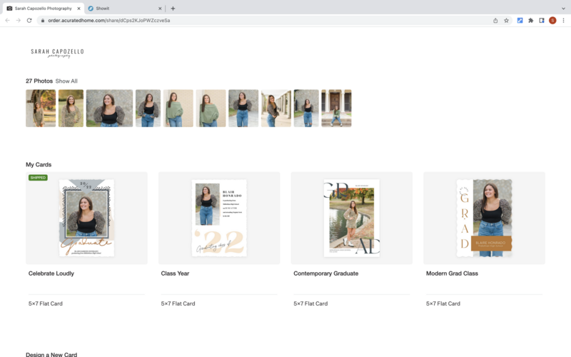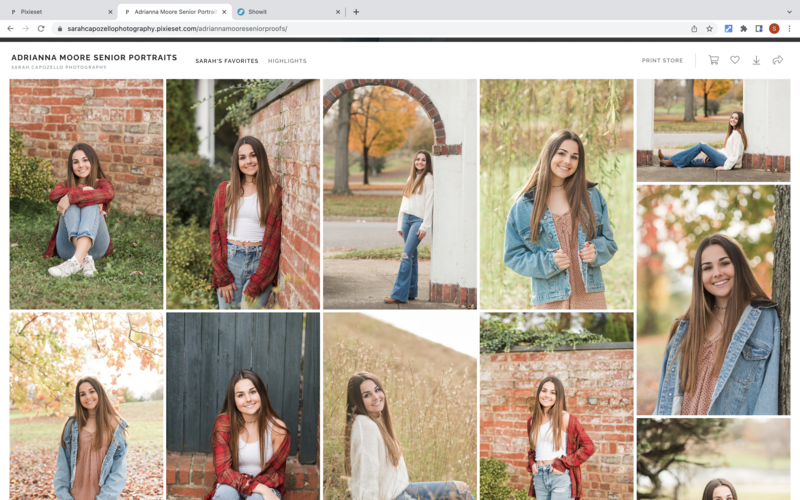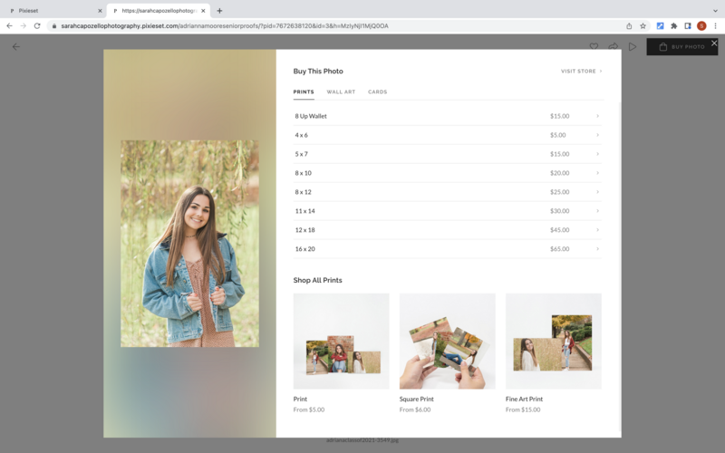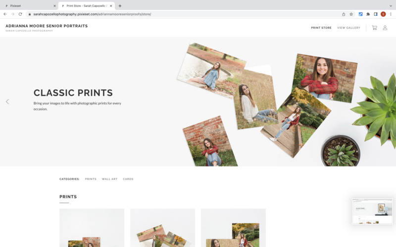In the next few pages, I am going to walk you through the "shop" portion of your senior gallery. This is where you can find prints, photo books, canvases, graduation cards and more directly through my professional printer!